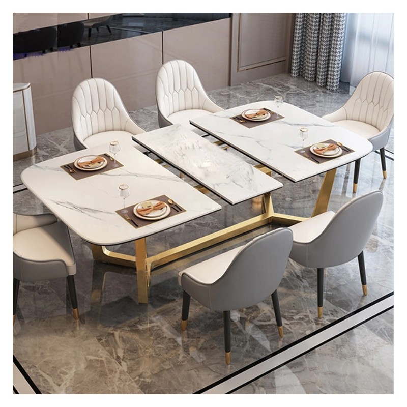 Tavolo da pranzo allungabile in Ceramica e Metallo Effetto marmo Bianco e Beige MALENA