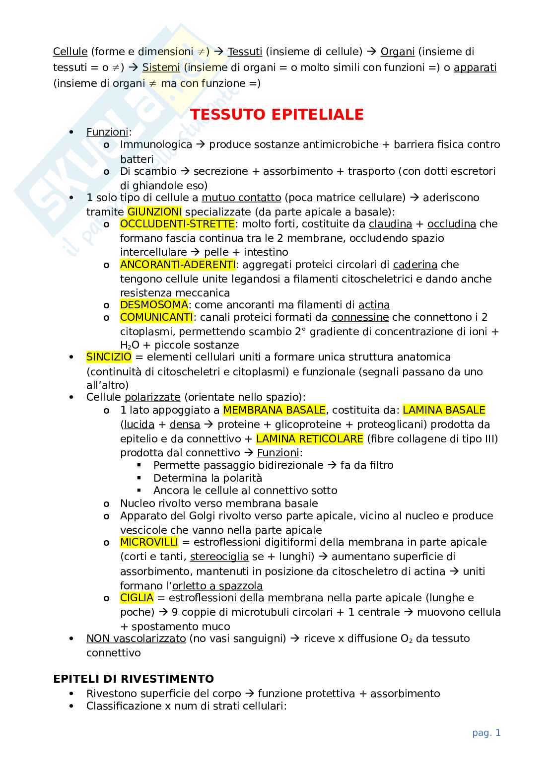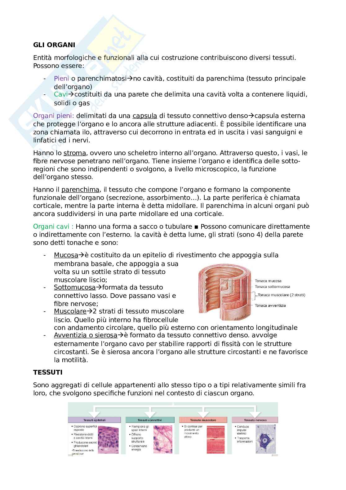 I tessuti del Corpo Umano | Schemi e mappe concettuali di Biologia | Docsity