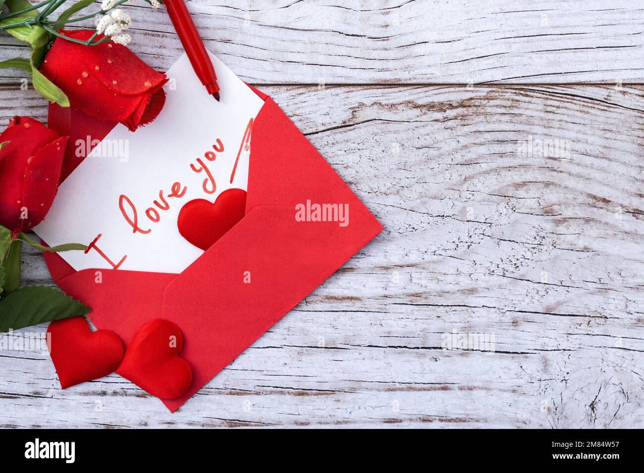 Ti Amo amore cuore dolce e rose rosse per San Valentino Foto stock - Alamy