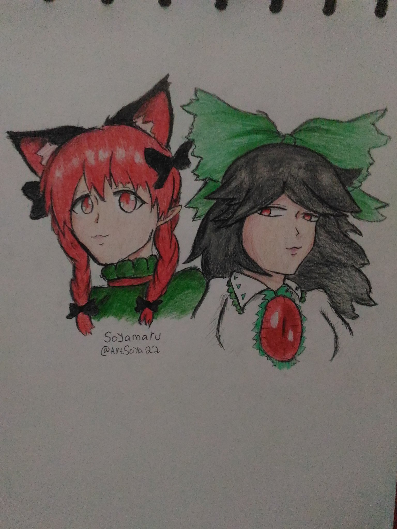 Okuu (& Orin) I was commissioned a while back! : r/touhou