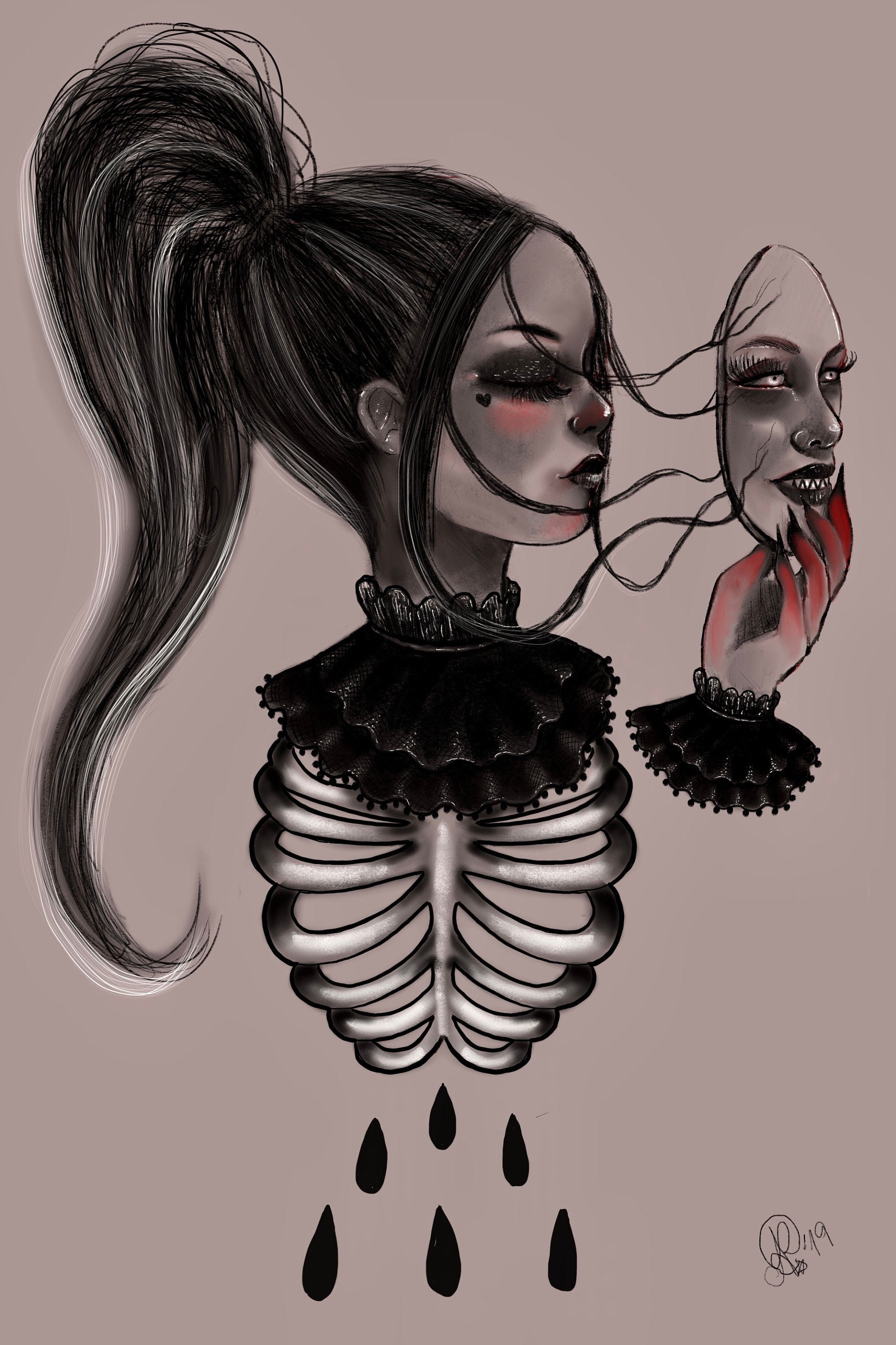 TRISTEZZA - quadro moderno, disegno in bianco e nero, ragazza triste
