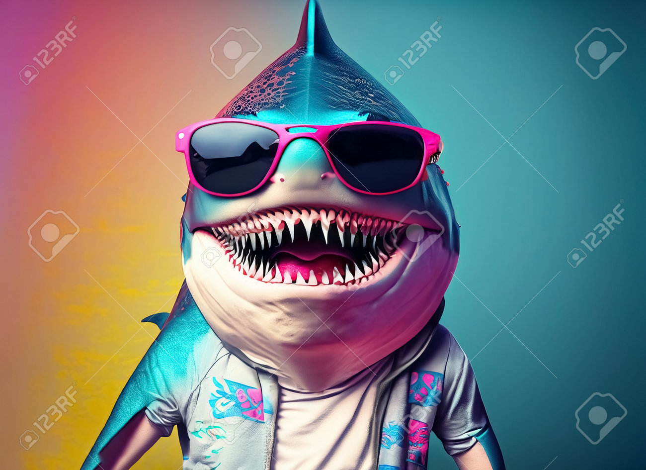 Immagini Stock - Illustrazione 3d Di Un Uomo Con Una Testa Di Squalo E Occhiali Da Sole.. Image 207121921