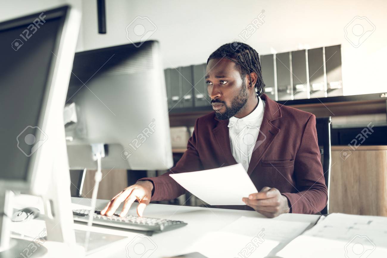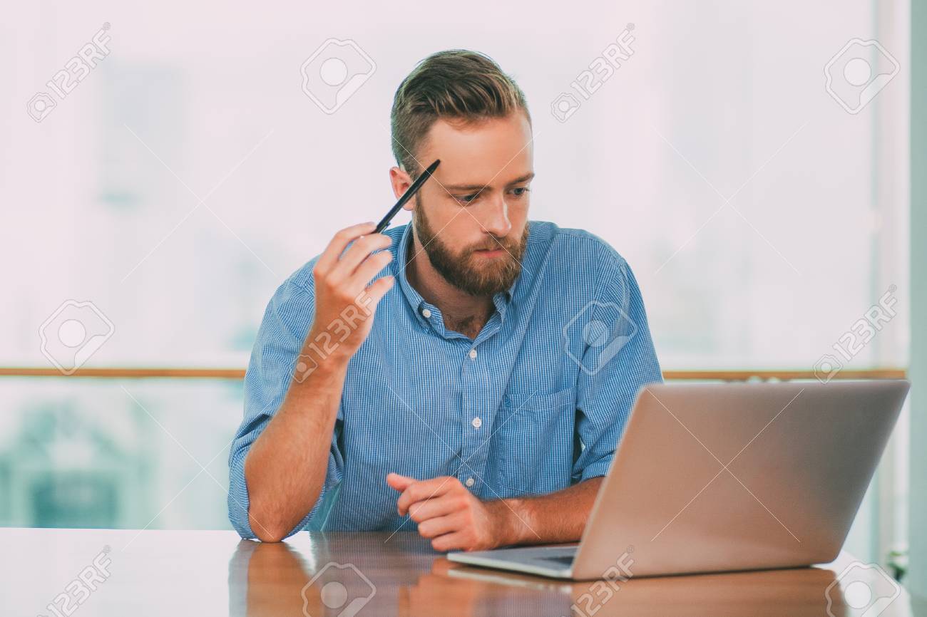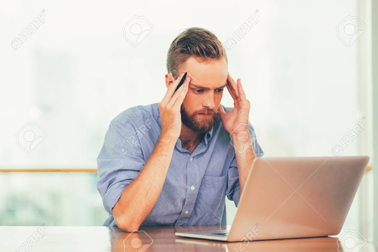 Uomo Confuso Che Lavora Al Pc Fotografia Stock - Immagine di informazione, malcontento: 46718678