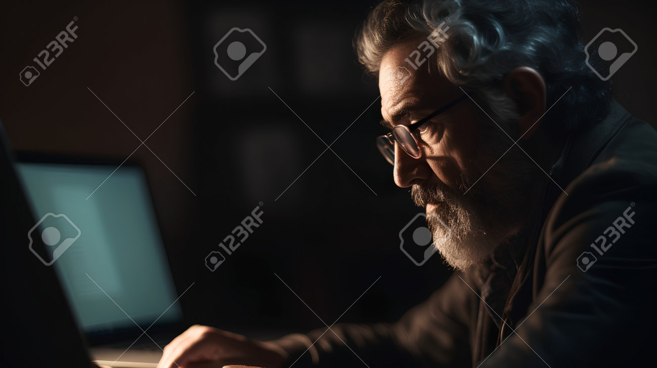 Immagini Stock - Ritratto Di Uomo Maturo Che Lavora Al Computer Di Notte In Ufficio.. Image 204784674