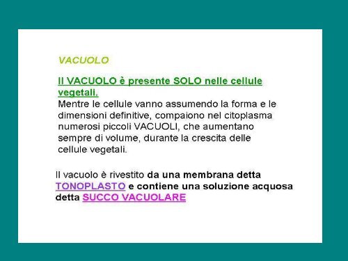 Il vacuolo - Schemi riassuntivi di Biologia Vegetale