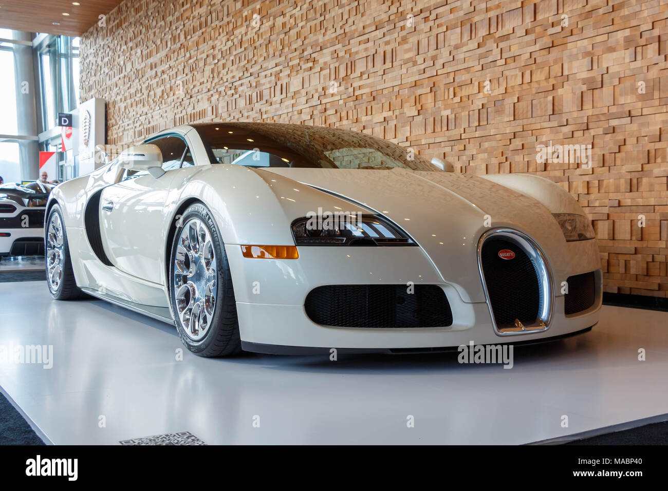 Immagini Stock - BERLINO - 04 Settembre, 2012: Showroom. Il Vano Motore Della Bugatti Veyron EB 16.4 È Una Grande Macchina Da Turismo A Motore Centrale. Bianco E Nero. Bugatti Veyron -