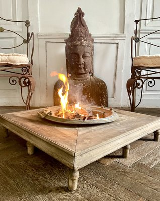 Braciere Riscaldante Fioriera in Rame su Base in Legno in vendita su Pamono