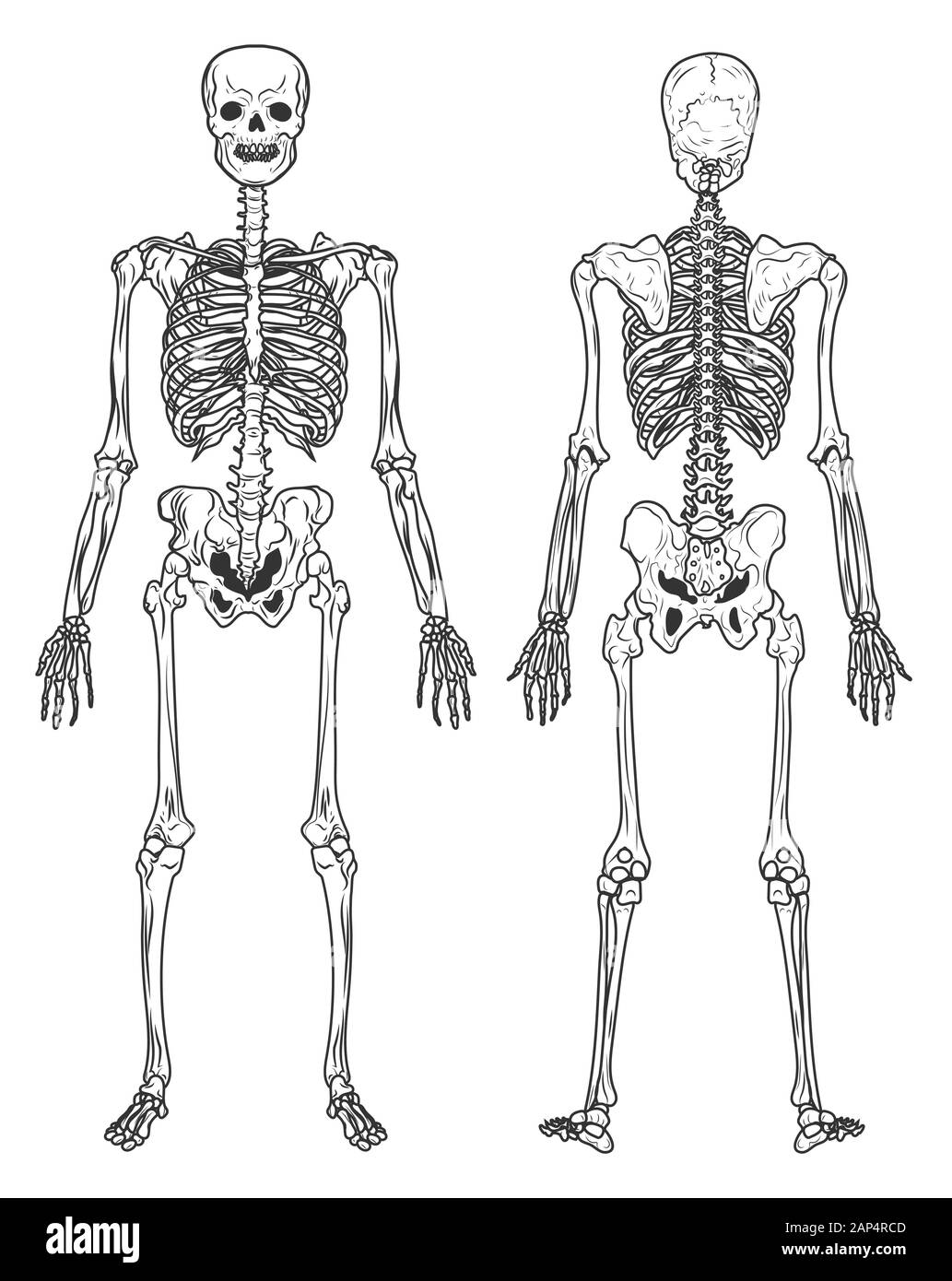 Struttura a scheletro indietro e in vista frontale, ossa umane Immagine e Vettoriale - Alamy