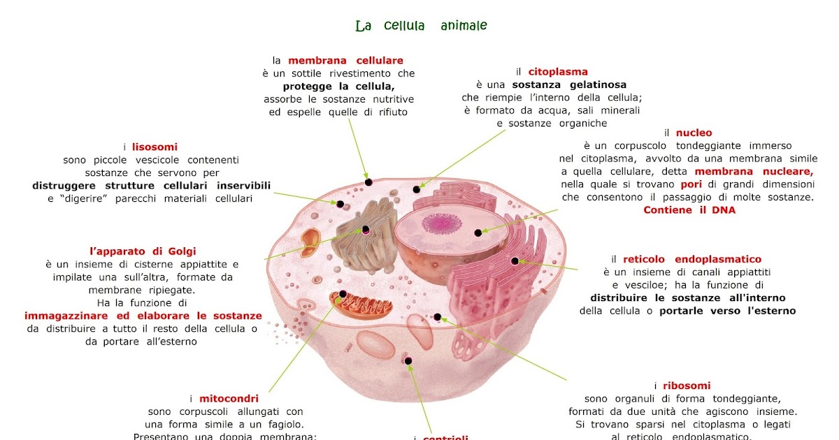 Modello di cellula animale, tra cui nucleo cellulare, corpo di golgi, lisosomi, centrioles, mitocondri, il reticolo endoplasmatico, ribosomi, citoplasma, vescicole, sottile membrana plasmatica, e microvilli (proiezioni) nella parte superiore Foto stock -