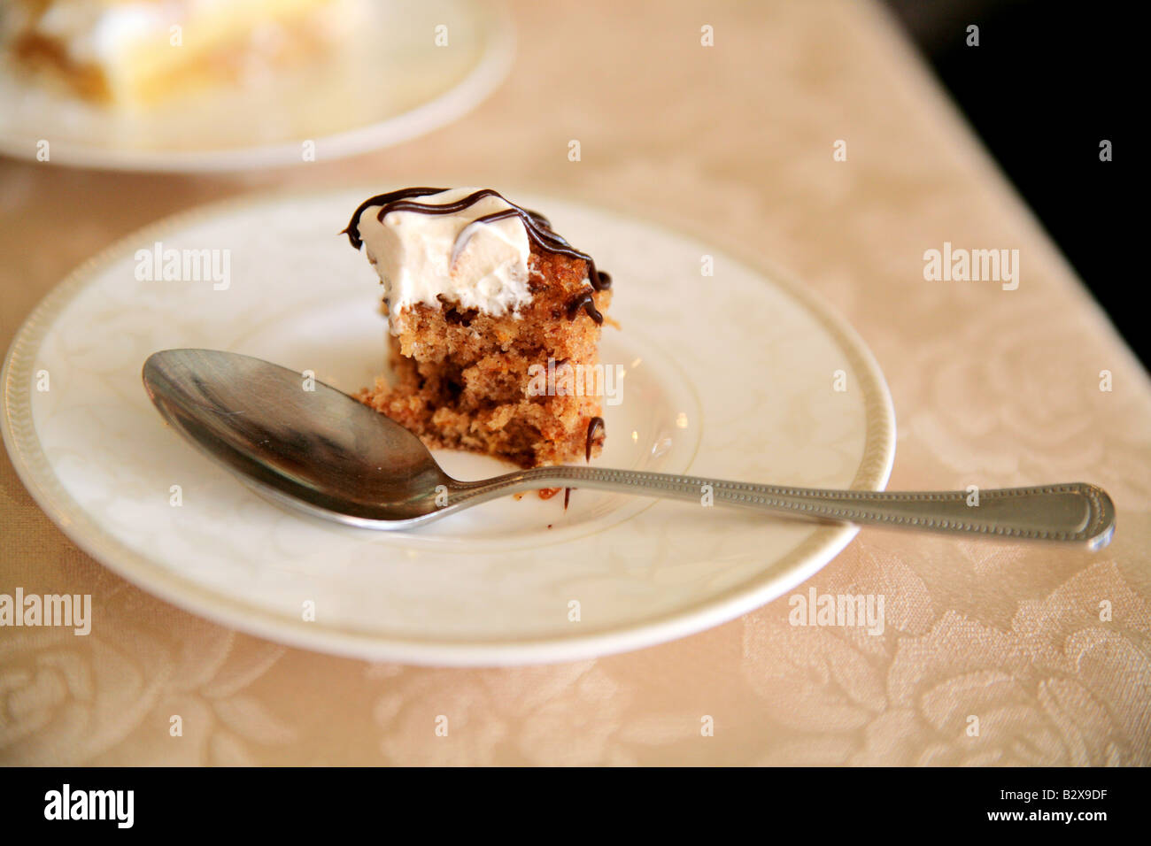 Mezza mangiata la torta in un piatto con un cucchiaio Foto stock ...