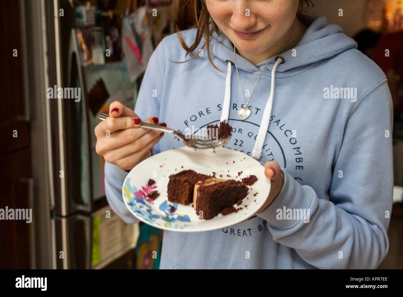 Ragazza che mangia torta al cioccolato immagini e fotografie stock ...